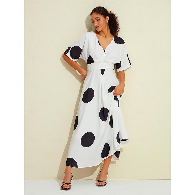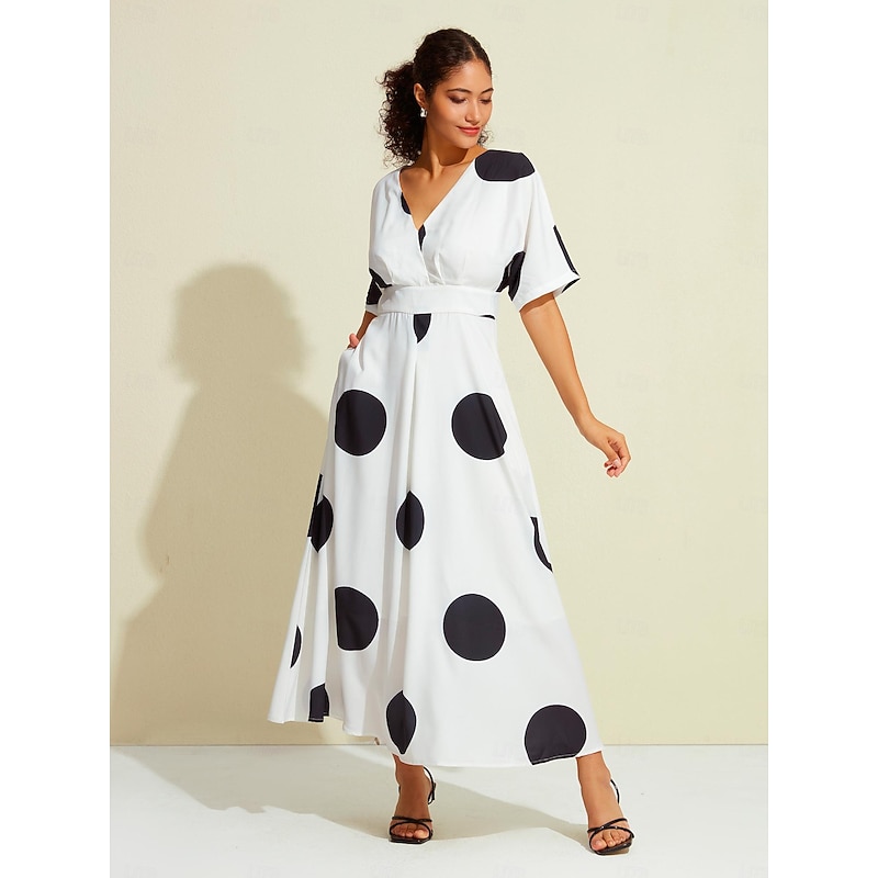 Highlights - Perfect for summer days - Long, elegant maxi dress - Flattering design for women - Stylish polka dot pattern - Cute tie back detail - Chic V neckline - Effortlessly stylish maxi dress