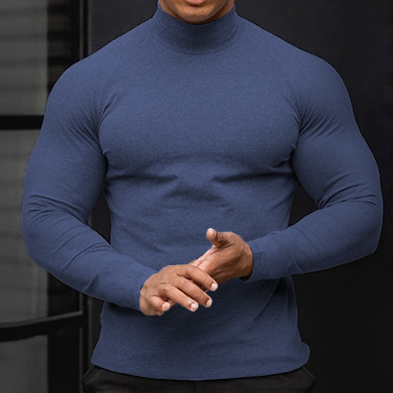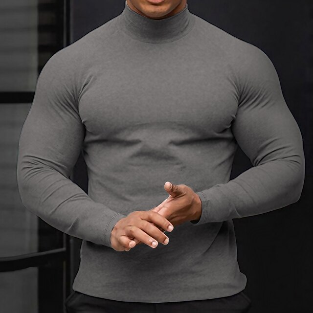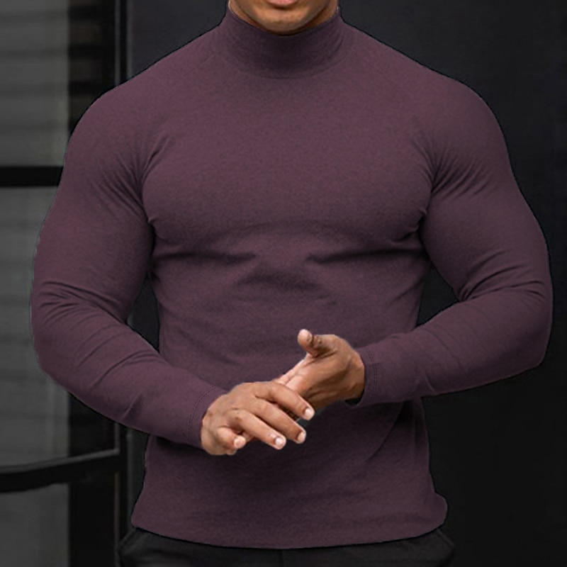 Men's T Shirt Turtleneck shirt Long Sleeve Shirt Long Sleeve Rolled collar Spring &  Fall Holiday Casual Comfortable Essential Vacation Holiday Weekend Black White Wine Top Tee for Men 10