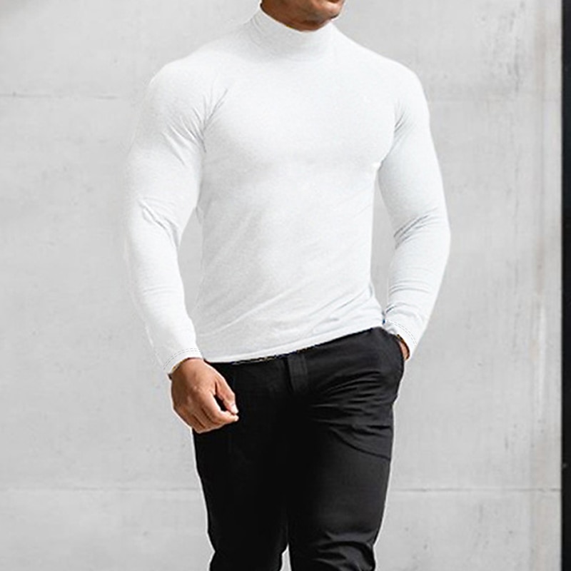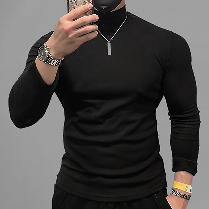 More information about Men's T Shirt Turtleneck shirt Long Sleeve Shirt Long Sleeve Rolled collar Spring & Fall Holiday Casual Comfortable Essential Vacation Holiday Weekend Black White Wine Top Tee for Men