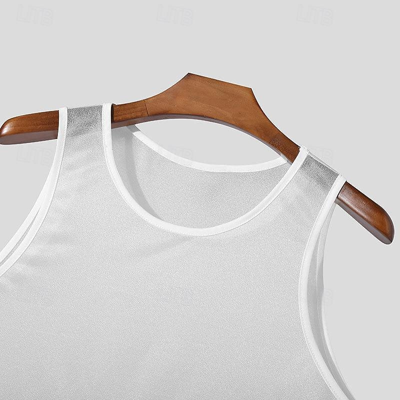 Men's Tank Top Vest Top Undershirt Sleeveless Shirt Sleeveless Crew Neck Spring & Summer Plain Fashion Designer Basic Mesh Vacation Street Going out Black White Top Tee for Men 4