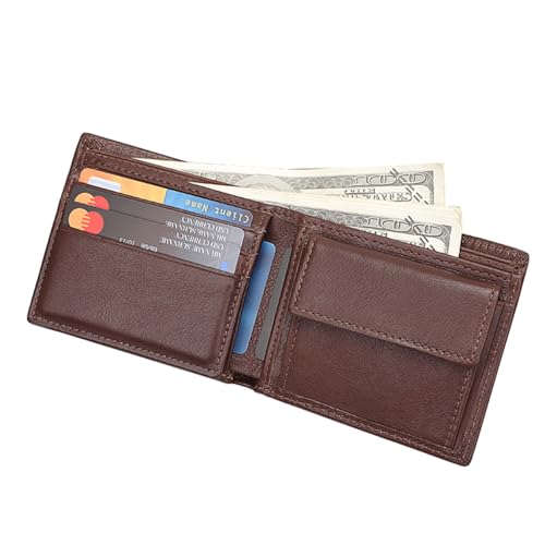 Men's Real Leather Wallet Slim Bifold RFID Blocking Small Credit Card Pockets ID Window(brown) 5