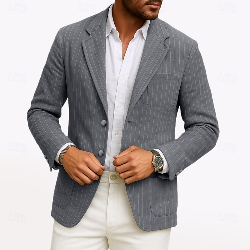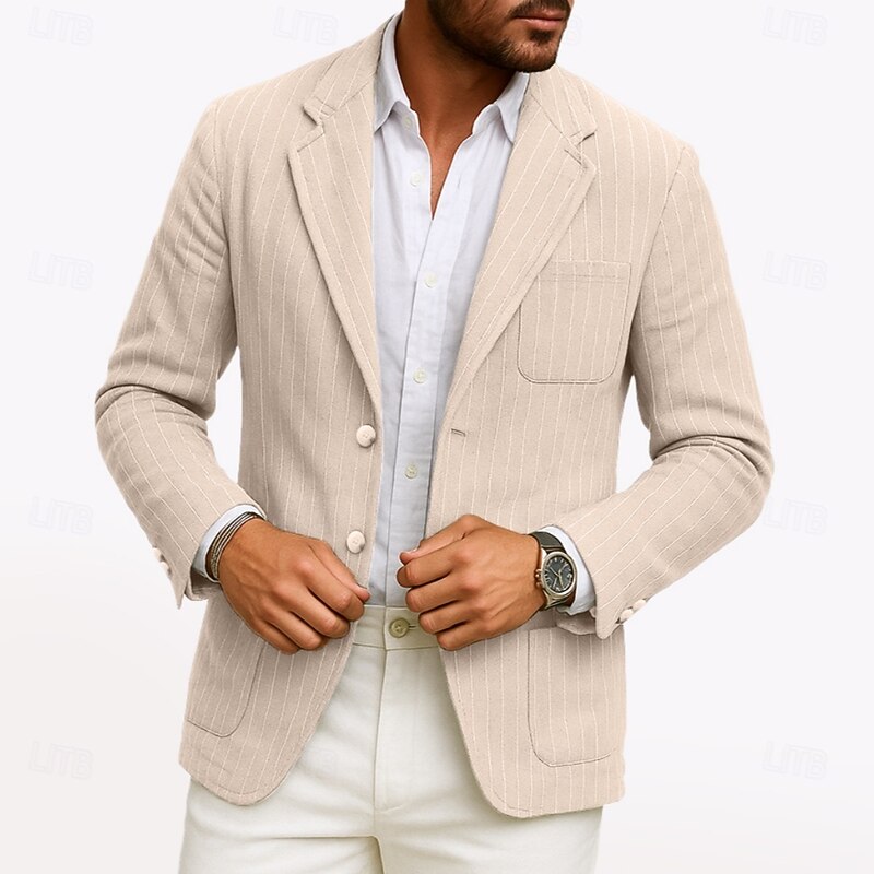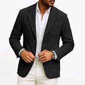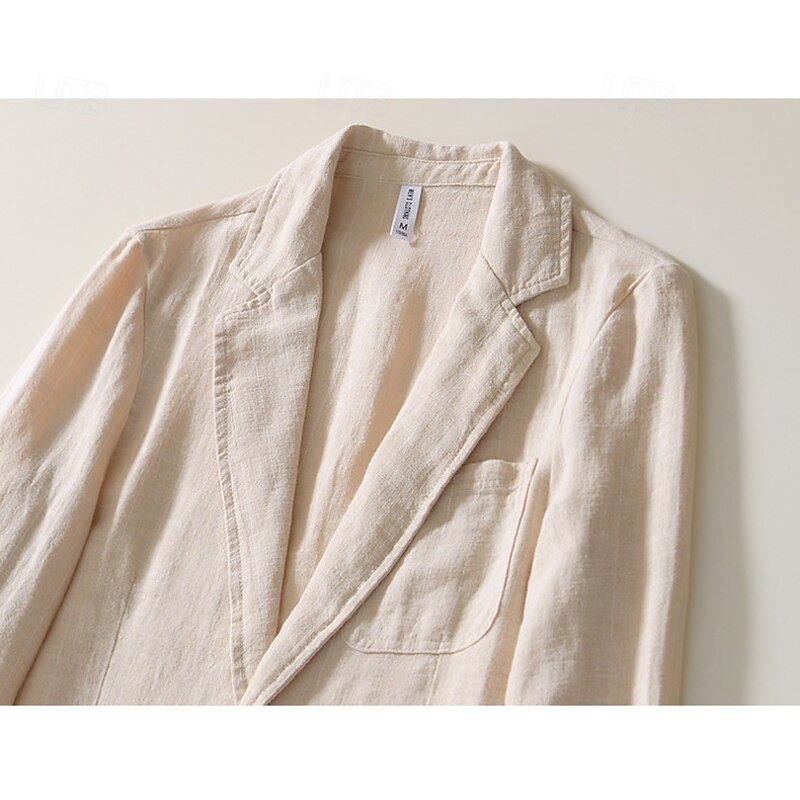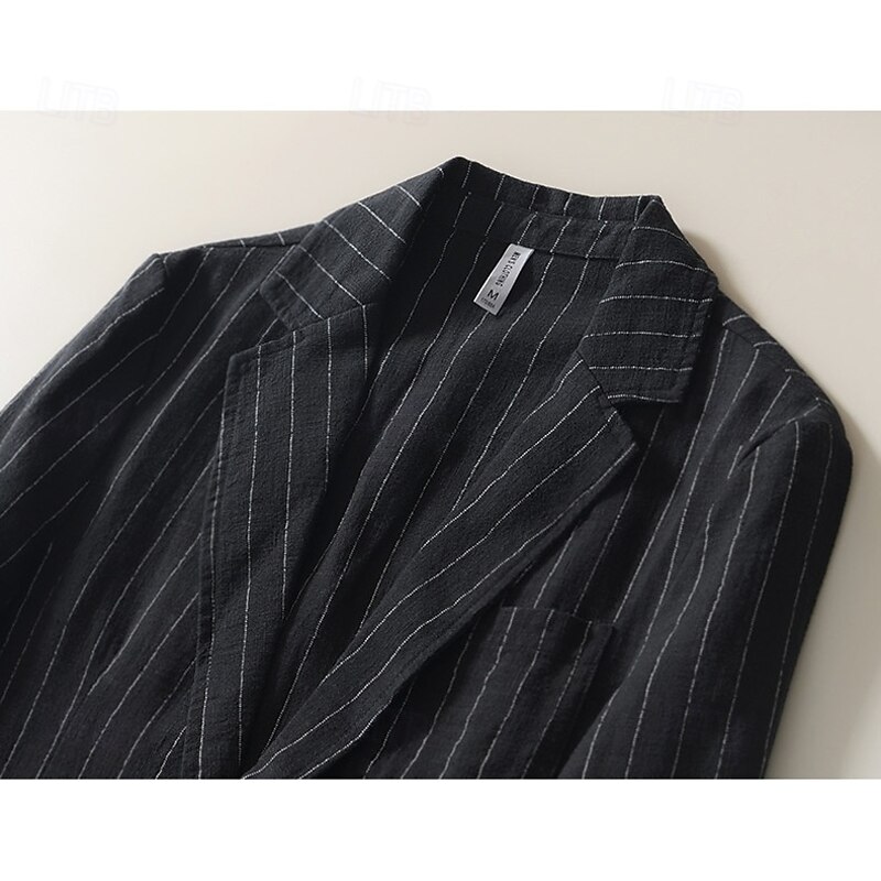 More information about Men's Linen Blazer Jacket Wedding Anniversary Vacation Only tops Elegant Vintage Spring Fall Cotton Linen Solid Color Striped Buttons Comfy Single Breasted Two-button Blazer Black Green khaki Gray