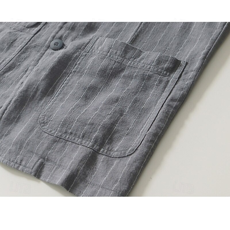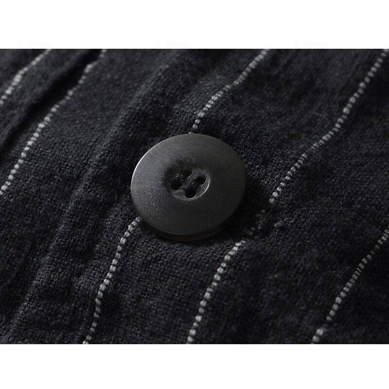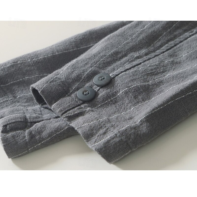 Men's Linen Blazer Jacket Wedding Anniversary Vacation Only tops Elegant Vintage Spring Fall Cotton Linen Solid Color Striped Buttons Comfy Single Breasted Two-button Blazer Black Green khaki Gray 7