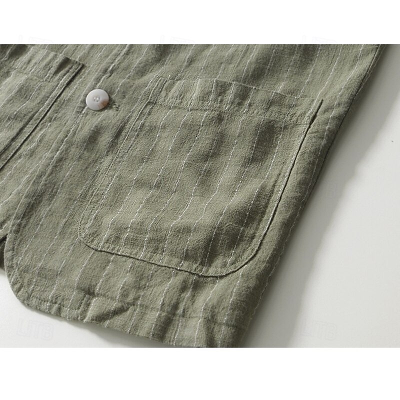 Men's Linen Blazer Jacket Wedding Anniversary Vacation Only tops Elegant Vintage Spring Fall Cotton Linen Solid Color Striped Buttons Comfy Single Breasted Two-button Blazer Black Green khaki Gray 9