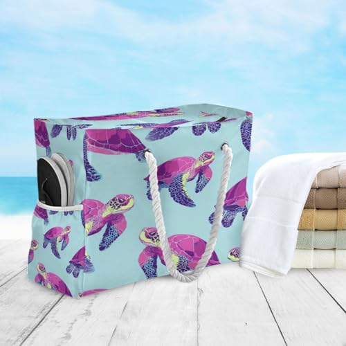 HOT ! Large Beach Bags Totes Canvas Tote Shoulder Bag Purple Turtle Water Resistant Bags for Gym Travel Daily