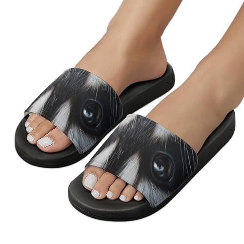Cute Raccoon Face Men's Bathroom Slippers Shower Indoor Home Beach Outdoor Shoes for Women 7