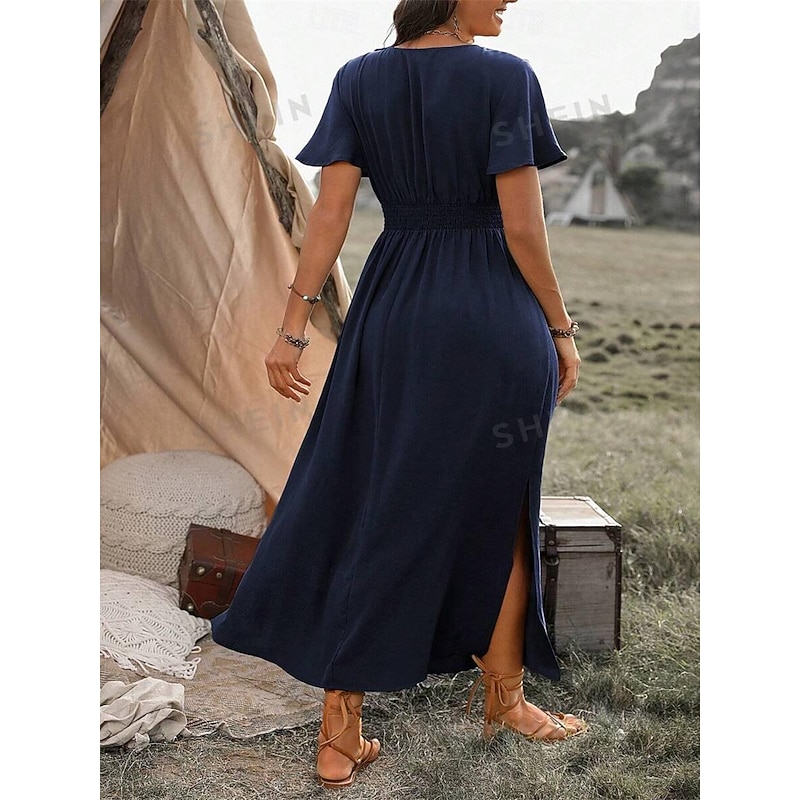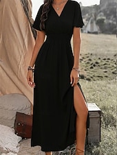 More information about Women's Summer Dress Maxi Dress Ruffle Hem Date Streetwear Maxi V Neck Short Sleeve Black Navy Blue Green Color