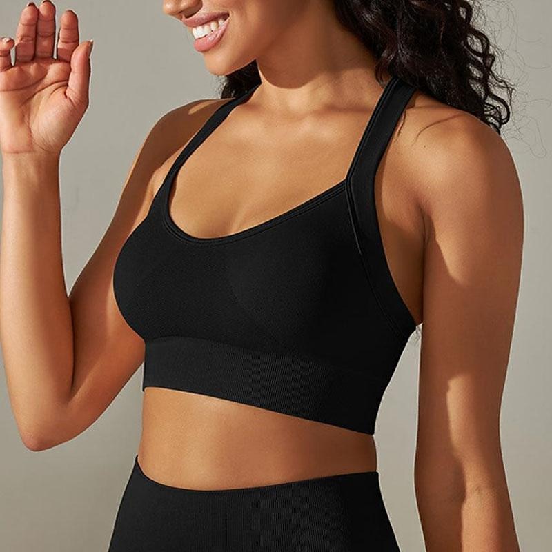 More information about Women's Light Support Sports Bra Running Bra Open Back Cross Back Bra Top Padded Fitness Leisure Sports Running Breathable Lightweight Soft Black White Dark Gray Solid Colored