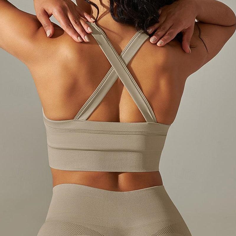 Women's Light Support Sports Bra Running Bra Open Back Cross Back Bra Top Padded Fitness Leisure Sports Running Breathable Lightweight Soft Black White Dark Gray Solid Colored 18