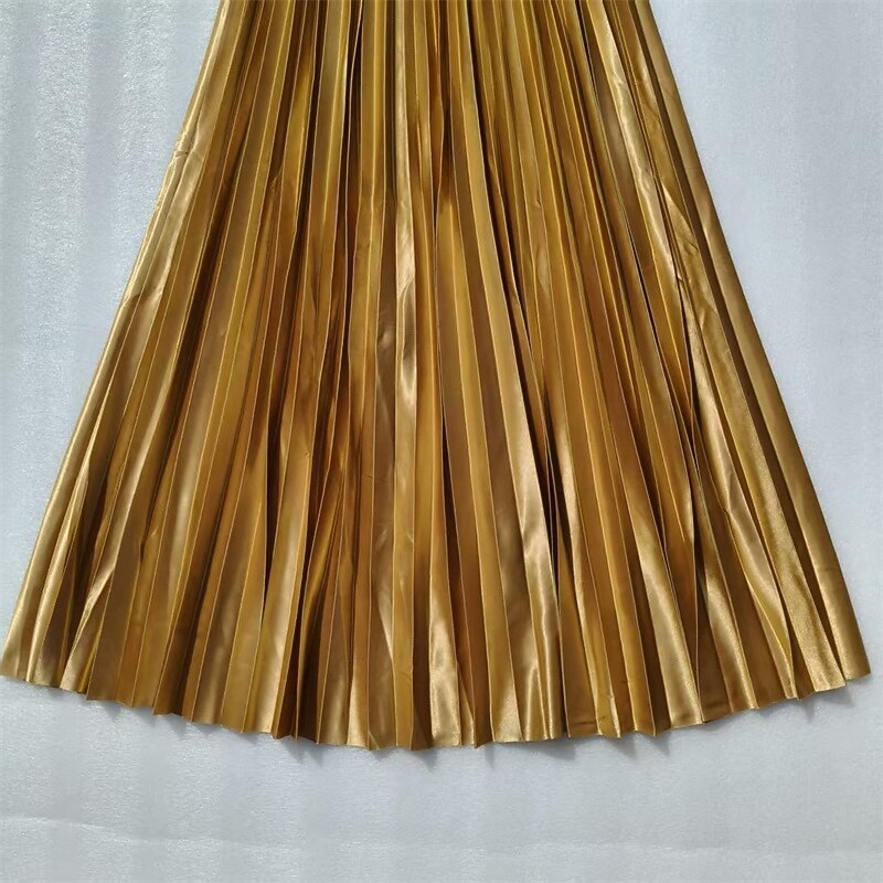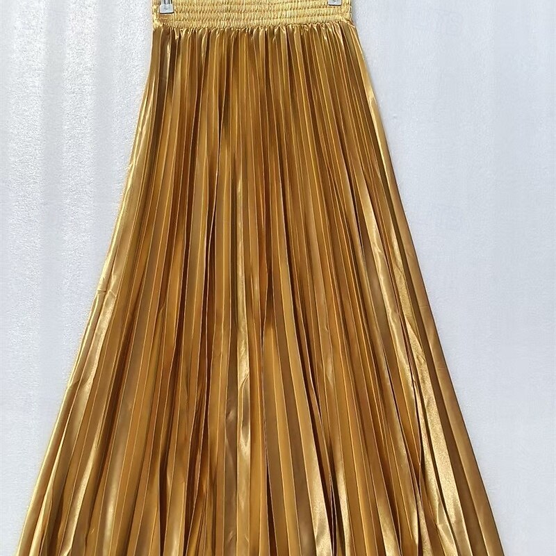 More information about Women's Skirt A Line Fashion Casual Maxi High Waist Skirts Plain Pleated Micro-elastic Casual Daily Weekend Wine Red Champagne Gold Summer Polyester