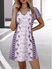 HOT ! Women's Mini Dress Petite Dress T Shirt Dress Tee Dress Sundress A Line Dress Elegant Vintage Stylish Vacation Casual Daily Regular Fit Floral Graphic Short Sleeve V Neck Purple Summer