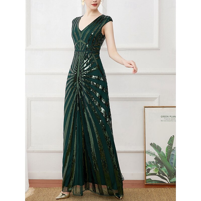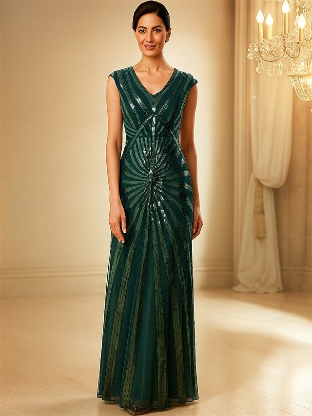More information about A-Line Mother of the Bride Dress Elegant Vintage Sparkle & Shine V Neck Floor Length Tulle Sleeveless with Beading Split Front