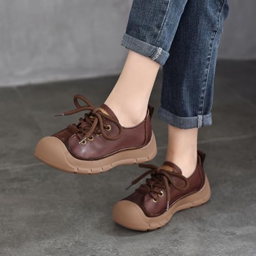Women's Retro Leather Baotou Lace-Up Soft Sole Sneakers Fashionable and Comfortable Breathable Non-Slip Casual Shoes 7