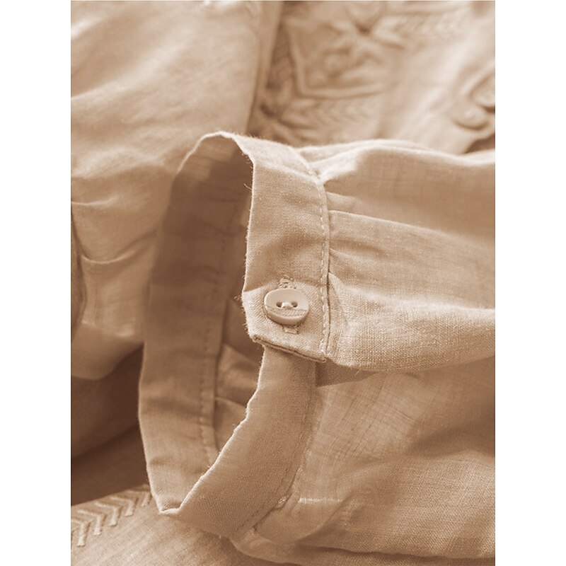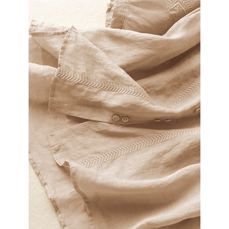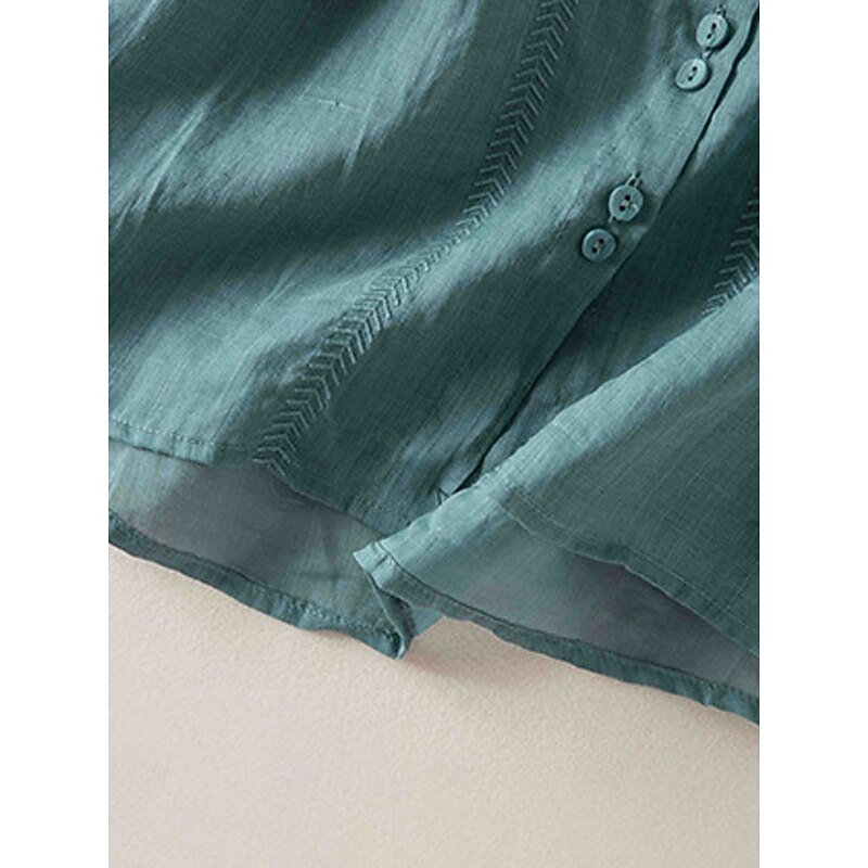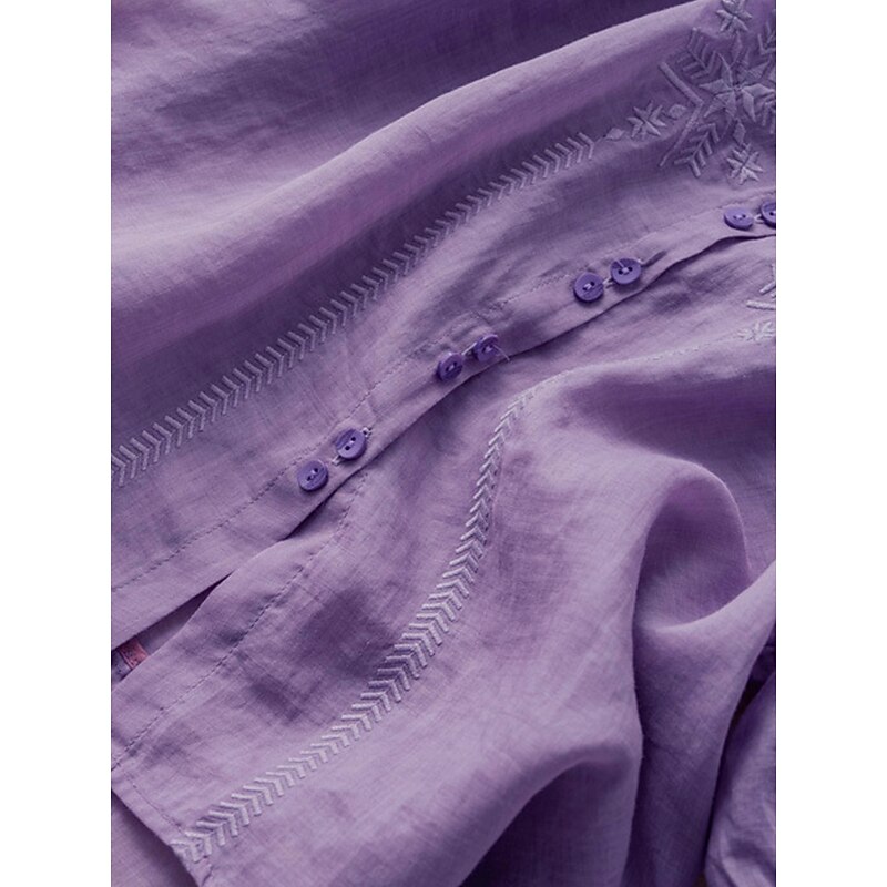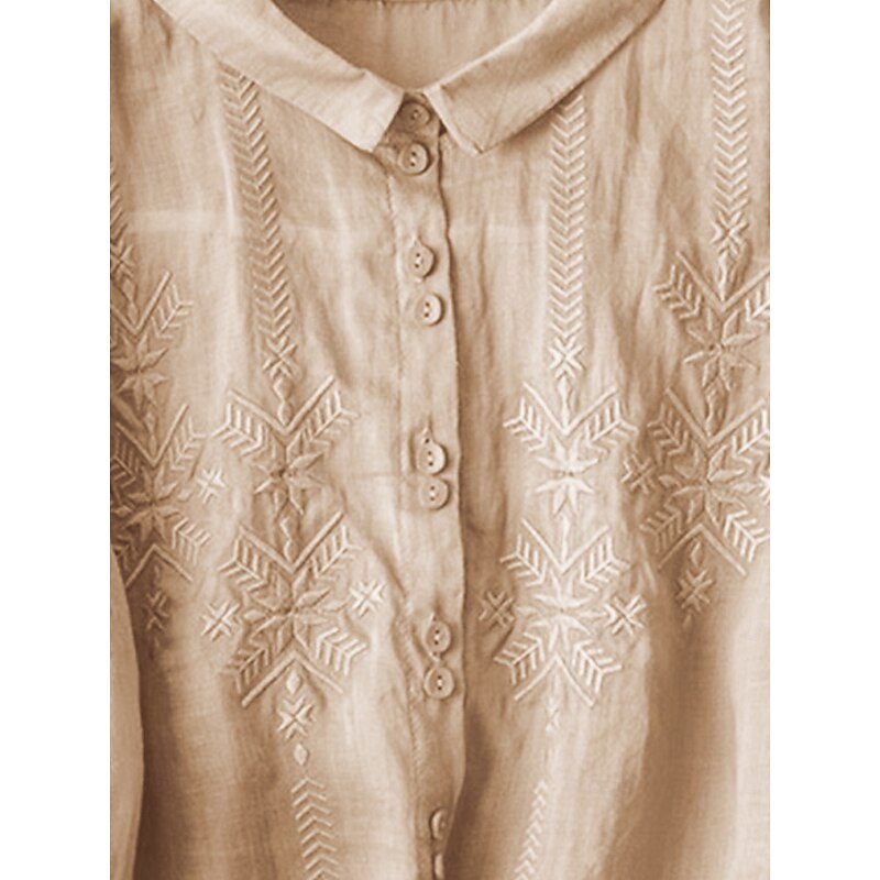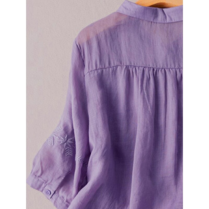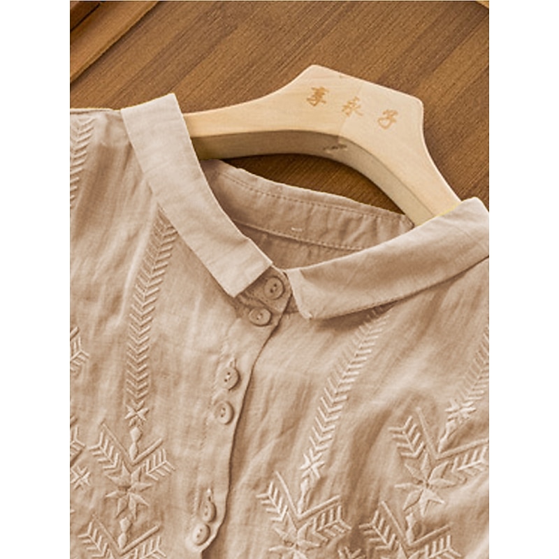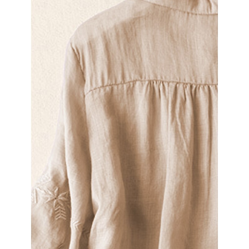 More information about Women's Shirt Linen-Inspired Shirts Button Up Solid Color Floral Casual Boho 3/4 Length Sleeve Elbow Sleeve Shirt Collar Regular Tops Daily Going out Embroidered Yellow Blue Purple Khaki Summer