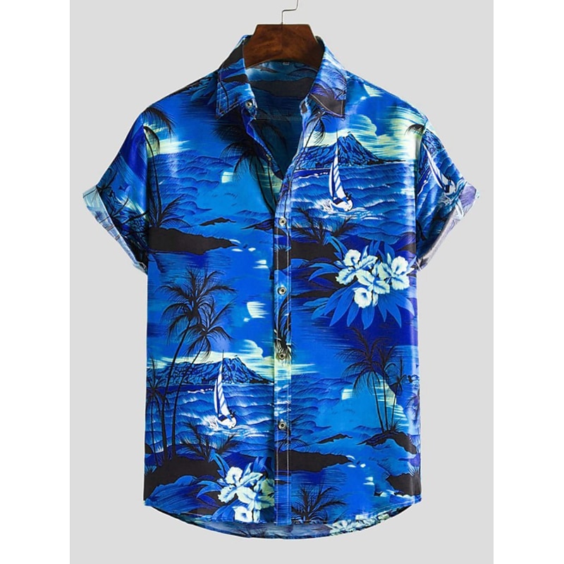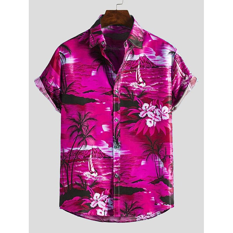 More information about Men's Palm Tree Sea Sailboat Shirt Summer Hawaiian Shirt Aloha Shirt Short Sleeve Shirt Collar Button Down Collar Designer Boho Beach Daily Going out Pink Royal Blue Blue Other Prints S M L