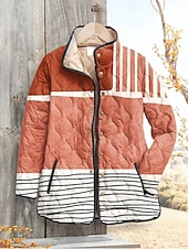 More information about Women's Winter Jacket Puffer Jacket Warm Comfortable Pocket Buttons Print Fashion Daily Outdoor Geometric Vacation Casual Daily Single Breasted Regular Stand Collar Regular Fit Long Sleeve Outerwear