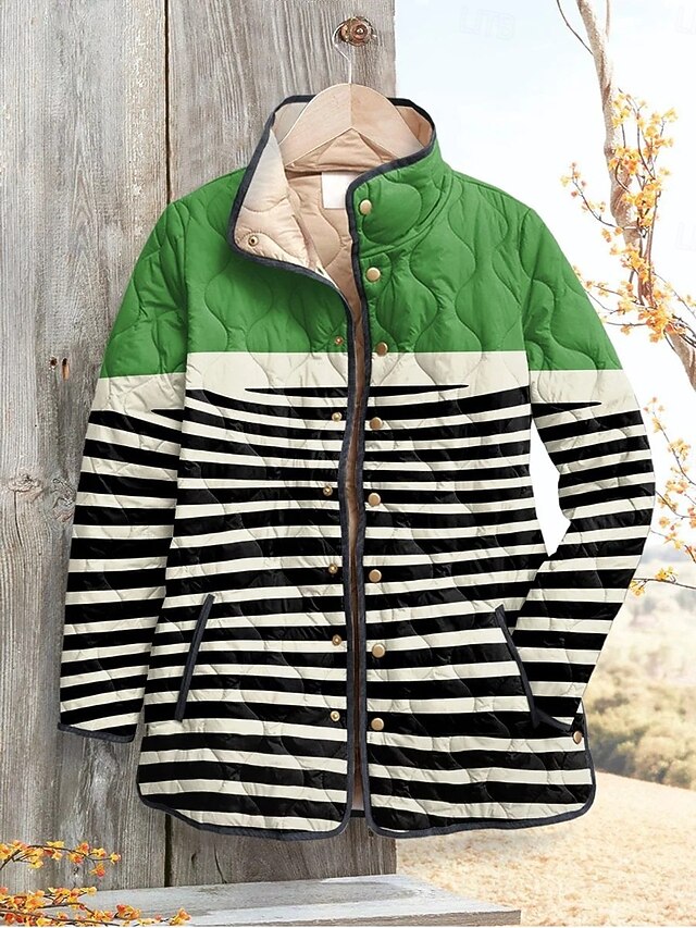 HOT ! Women's Winter Jacket Puffer Jacket Warm Comfortable Pocket Buttons Print Fashion Daily Outdoor Geometric Vacation Casual Daily Single Breasted Regular Stand Collar Regular Fit Long Sleeve Outerwear