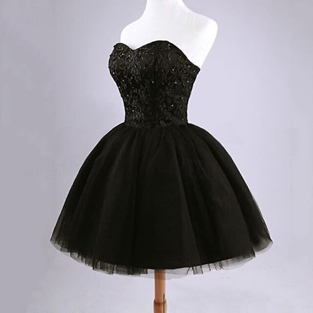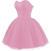 Highlights [Fabric] : This elegant cocktail dress is crafted from high-quality polyester, ensuring a smooth and comfortable fit. The luxurious fabric is adorned with delicate beading and pleats, adding texture and visual interest to the design. [Silhouette] : Featuring a classic ball gown silhouette, this dress offers a playful and voluminous shape with its short/mini hemline. The graceful A-line design flatters various body types, providing both style and freedom of movement. [Design Highlights] : The dress showcases a chic strapless neckline with intricate lace detailing on the bodice, enhancing its sophisticated charm. The pleated skirt further adds to the dress's elegance, while the lace-up closure at the back ensures a perfect fit every time. Strappy accents provide a modern touch, making it a standout choice for any formal gathering. [Occasions] : Perfect for weddings, birthdays, graduations, and parties, this dress is designed for those special occasions where you want to leave a lasting impression. Its timeless style and sophisticated detailing make it a go-to choice for any fashionable event. [Size Notice] : Available in a range of sizes from S to XXL, this dress caters to a variety of body types. Choose from stunning colors like Champagne, Black, Pink, Sky Blue, and Peach to find the perfect shade that complements your personal style.