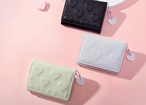 • Cute Heart Embossing & Keychain:Designed with romantic heart-patterned leather and a matching heart-shaped keychain, this wallet adds a trendy and sweet touch to your everyday style. This cute wallet is great fashion for girls or women.