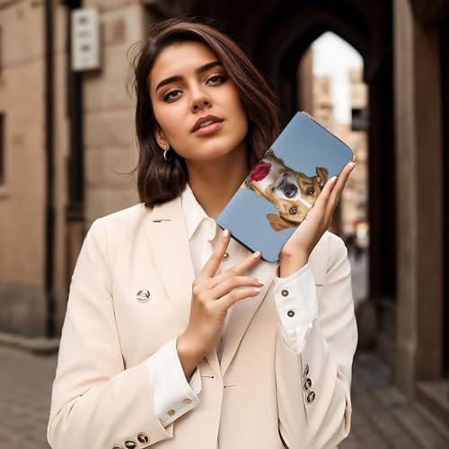 HOT ! Pu Leather Wallet For Women Girl, Zip Around Credit Card Holder Dog Holding A Rose Long Wallet Clutch Purse Waterproof Travel Handbag