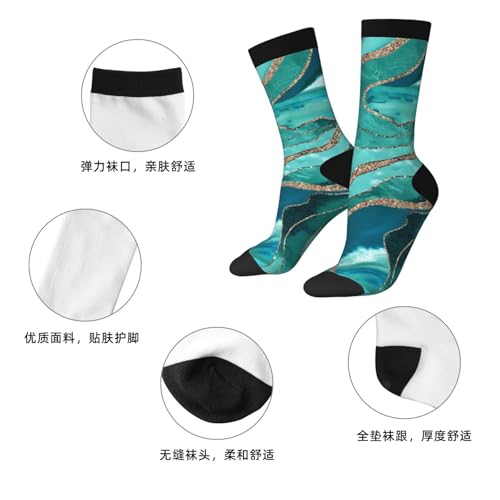 HOT ! Turquoise Teal Marble Agate Gold Glitter Men'S And Women'S Performance Socks - Breathable Sports Socks With Arched Support For Sports, Running, Everyday Wear