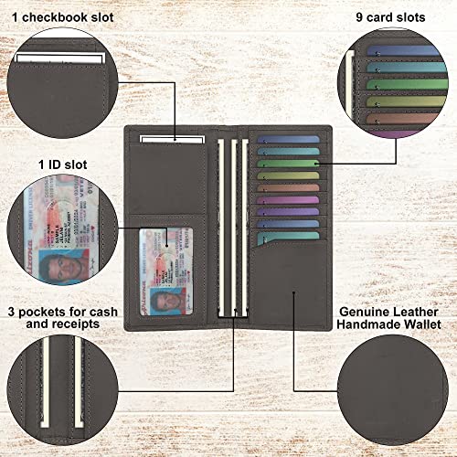 • Large Capacity: With 9 card slots, 1 ID slot and and 1 checkbook slot, this checkbook wallet can hold everything you need for daily life.
