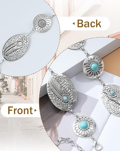 Kajeer Western Chain Belts, Women Concho Belt Turquoise Cowgirl Country Silver Country Waist Belts for Dresses Jean 3