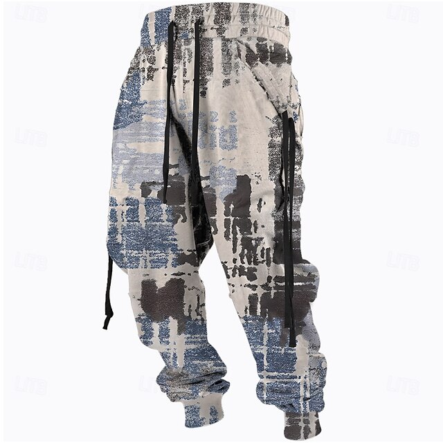 More information about Men's Graphic Sweatpants Joggers Pants Trousers Mid Waist Drawstring Elastic Waist Vintage Casual Outdoor Street Dailywear Pocket Spring Fall Winter 3D Print Light Gray Blue Beige