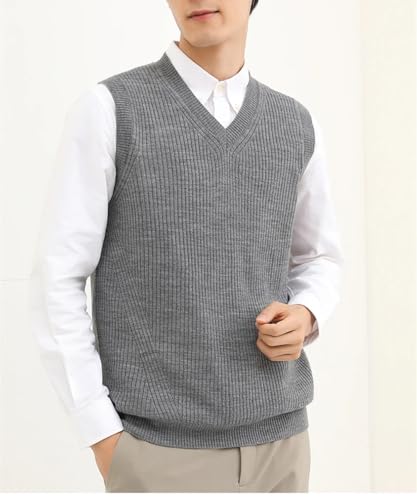 Men's Business Casual Classic Style Knitted Vest for Work V - Neck Sleeveless Pullover Sweater 4