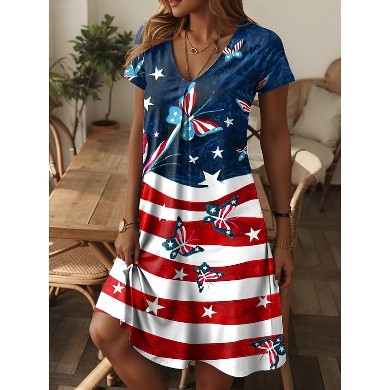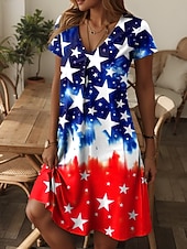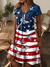 Women's Patriot Veteran Patriotic  Dress Mini Dress T Shirt Dress Summer Dress Casual Daily Regular Fit Graphic Flag Red White And Blue Short Sleeve V Neck Blue 11
