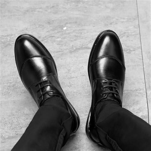Men's Lace up Genuine Leather Oxfords Comfortable Business Casual Dress Shoes Pointed Toe Height Increasing Formal Shoes for Office Wedding and Daily Wear 6