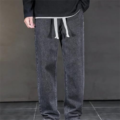 Men's Fall Winter Jeans – Loose Straight Denim Pants with Drawstring Elastic Waist, Casual Plus Size Trousers 5