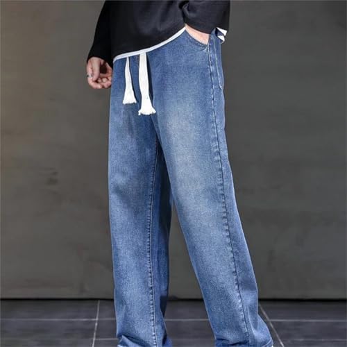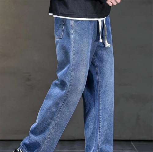 Men's Fall Winter Jeans – Loose Straight Denim Pants with Drawstring Elastic Waist, Casual Plus Size Trousers 7