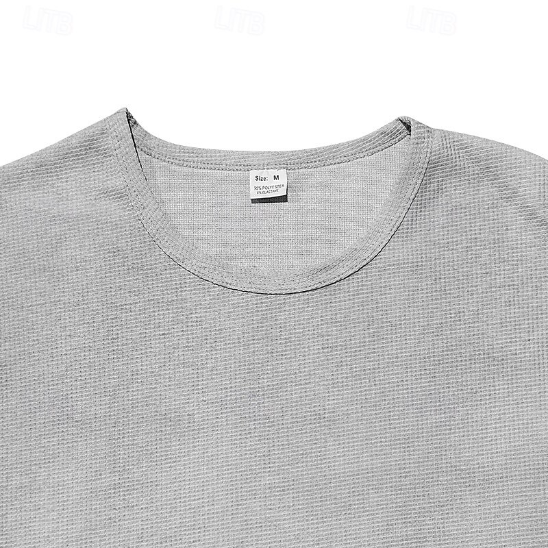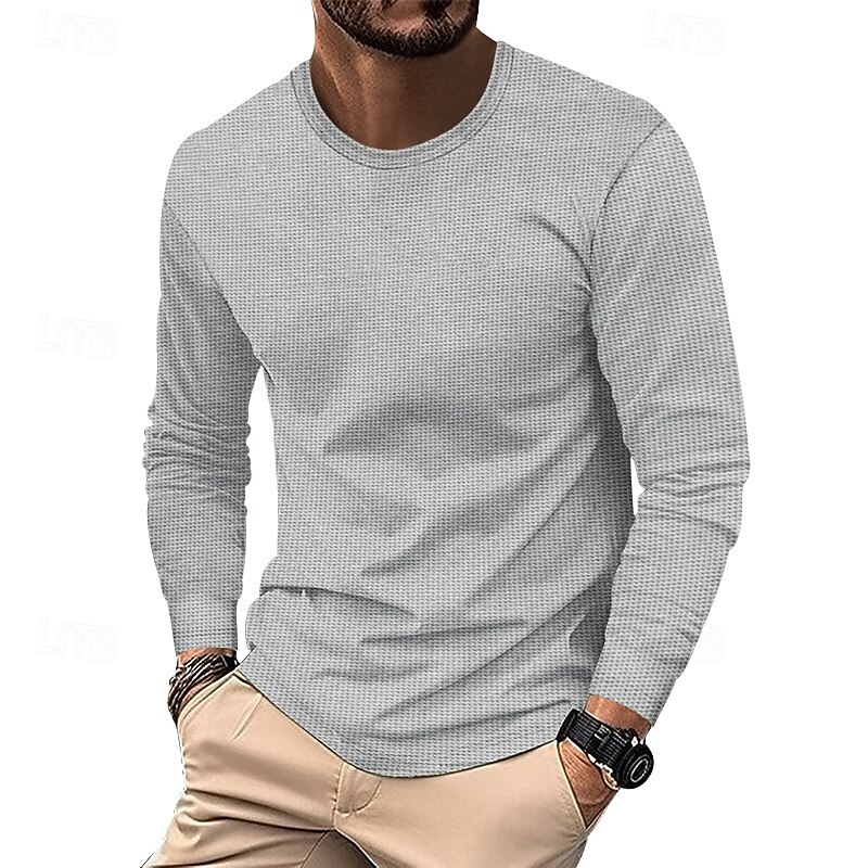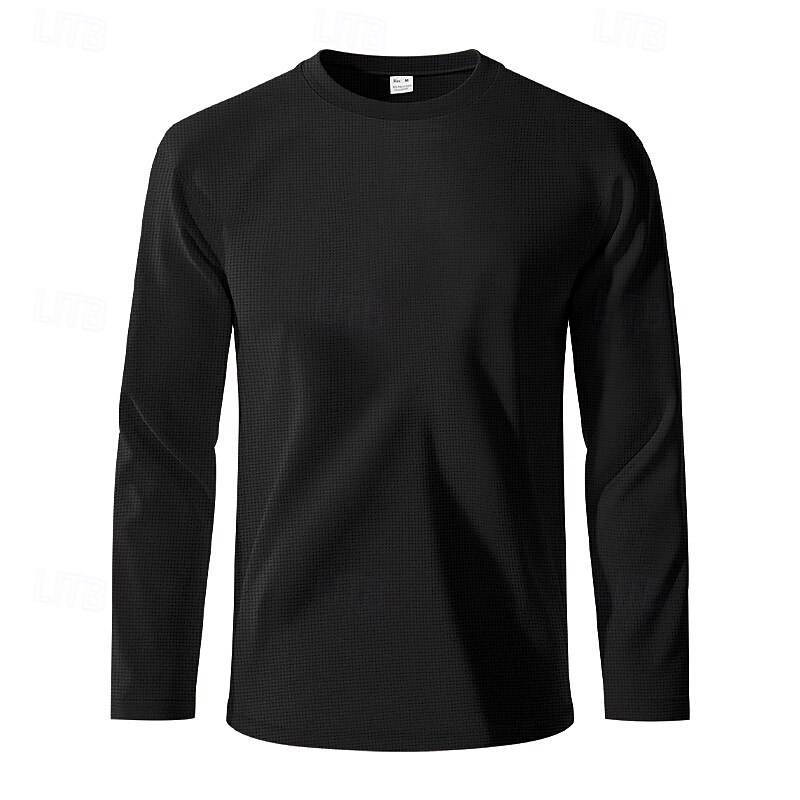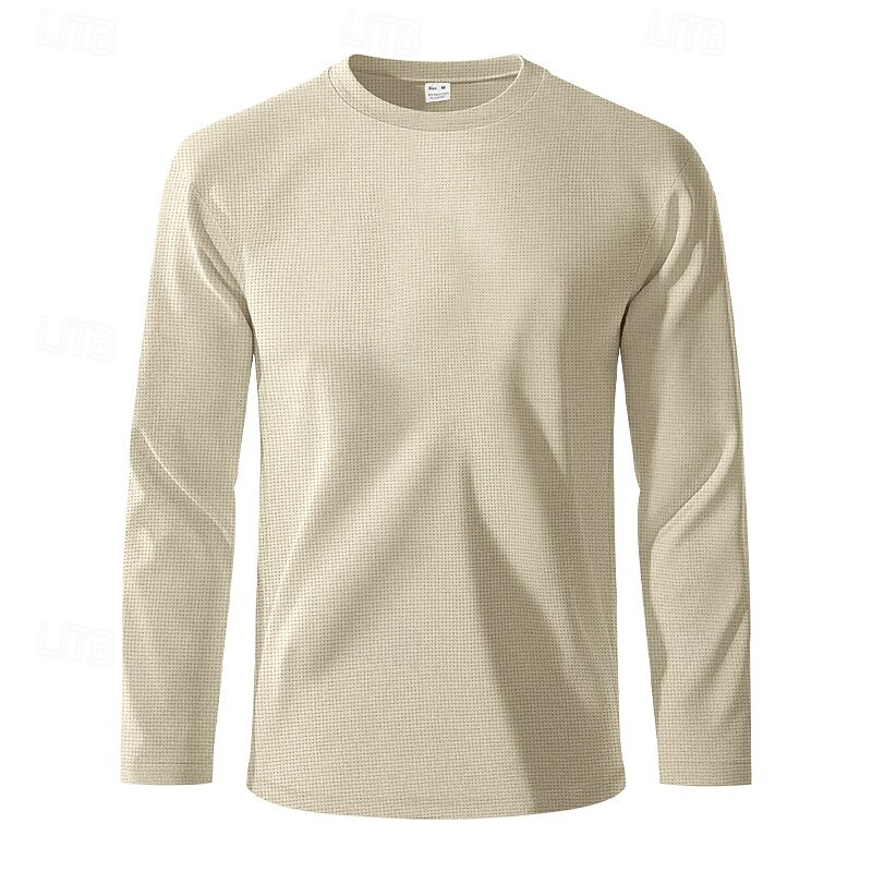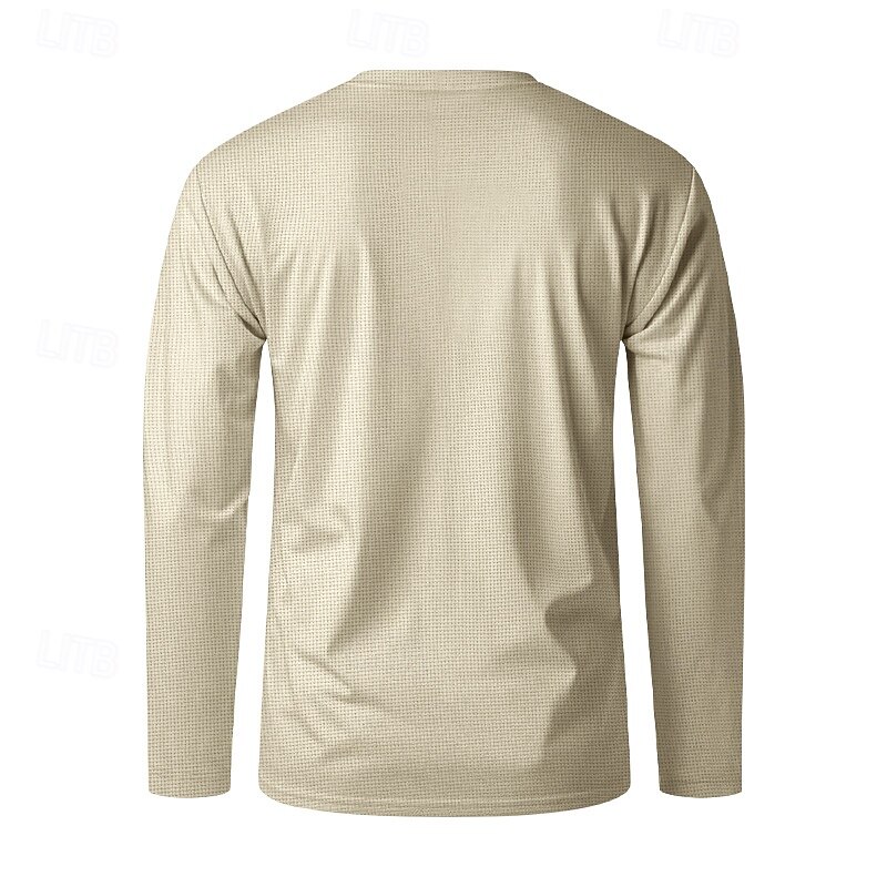 More information about Men's T Shirt Tee Waffle Knit Tee Tee Top Long Sleeve Crew Neck Spring & Fall Plain Fashion Designer Basic Classic Vacation Street Going out Black White Khaki Top Tee for Men