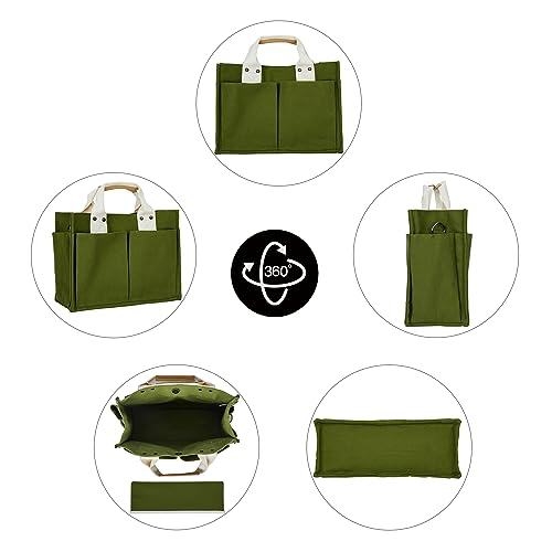 • [Use] This green small canvas tote bag for women has a fashionable and casual style, suitable for commuting,business,daily travel, visiting relatives and friends, and shopping; It is quite capable of holding small items such as keys, lipstick, books, foldable umbrellas, water bottles or mineral water, mobile phones, iPad, and can accommodate up to 13.3-inch laptops.