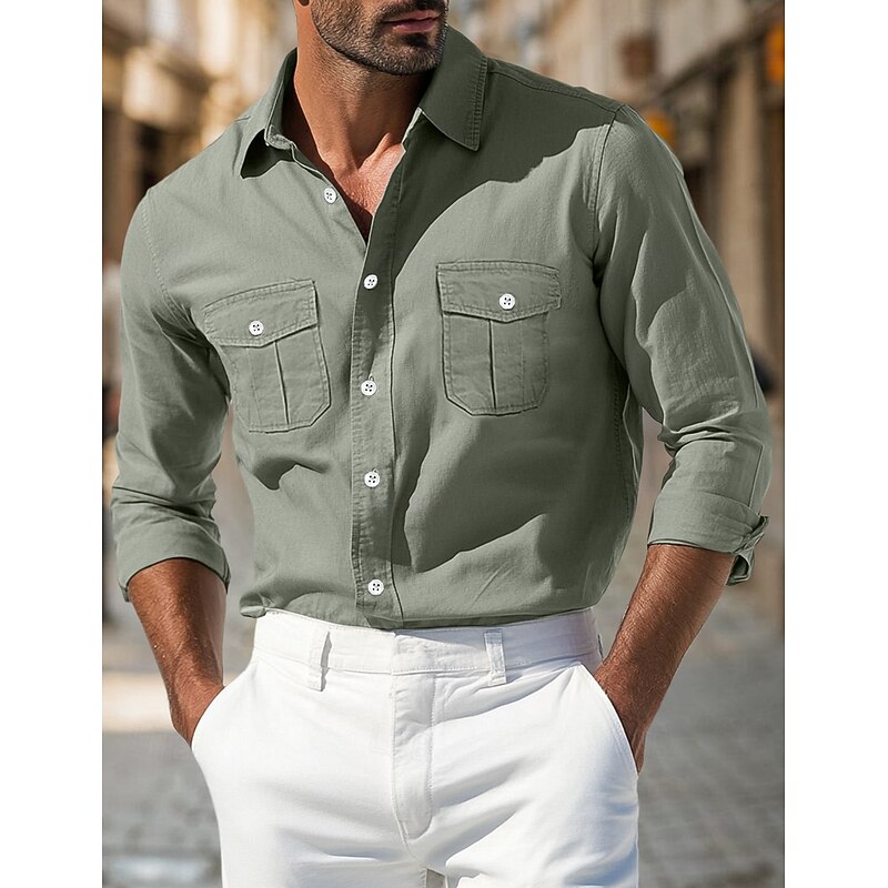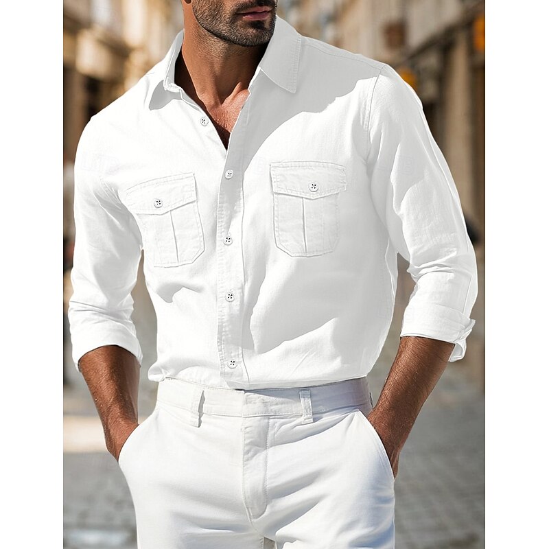 More information about Men's Shirt Casual Shirt Button Up Shirt Black White Light Green khaki Army Green Long Sleeve Plain Collar Vacation Daily Clothing Apparel Fashion Casual