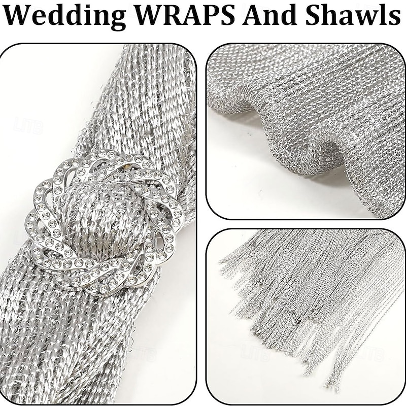 Women's Shawls and Wraps for Evening Dresses Glitter Shawls Fringe Bridal Capelet for Bride and Bridesmaid 5