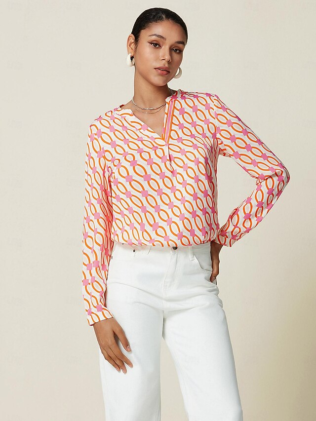 HOT ! Women's Geometic Daily Wear Casual Daily Pink Buttons Blouses Spring
