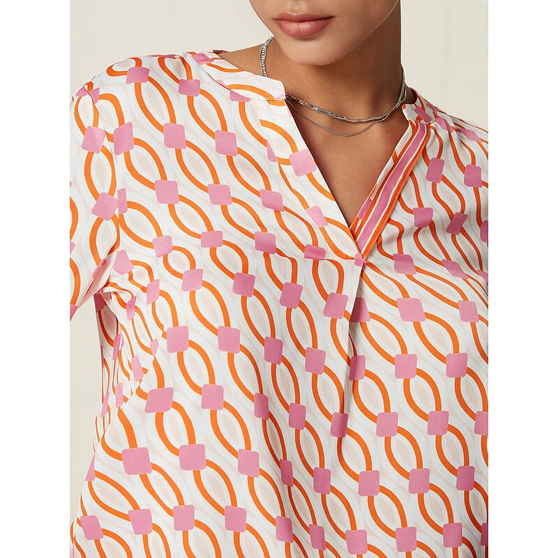 Women's Geometic Daily Wear Casual Daily Pink Buttons Blouses Spring 7