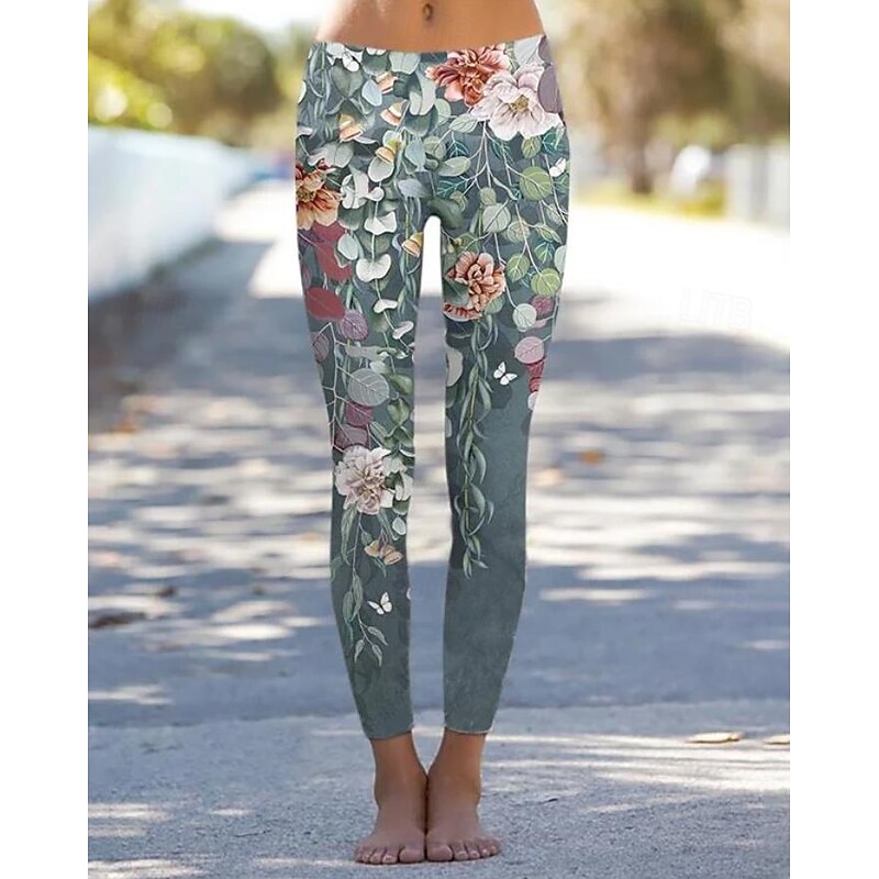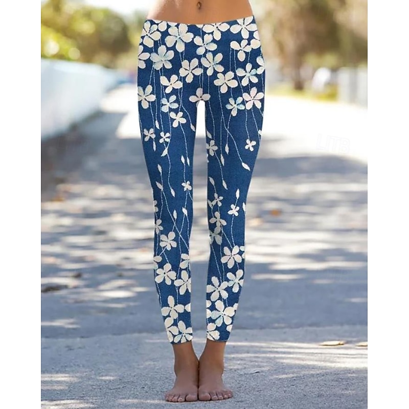Women's Leggings Vintage Fashion Casual Ankle-Length High Waist Floral Graphic Printing Thermal Warm Soft Breathable Micro-elastic Vacation Casual Daily Black White Pink Blue Summer Spring Regular Fit 11
