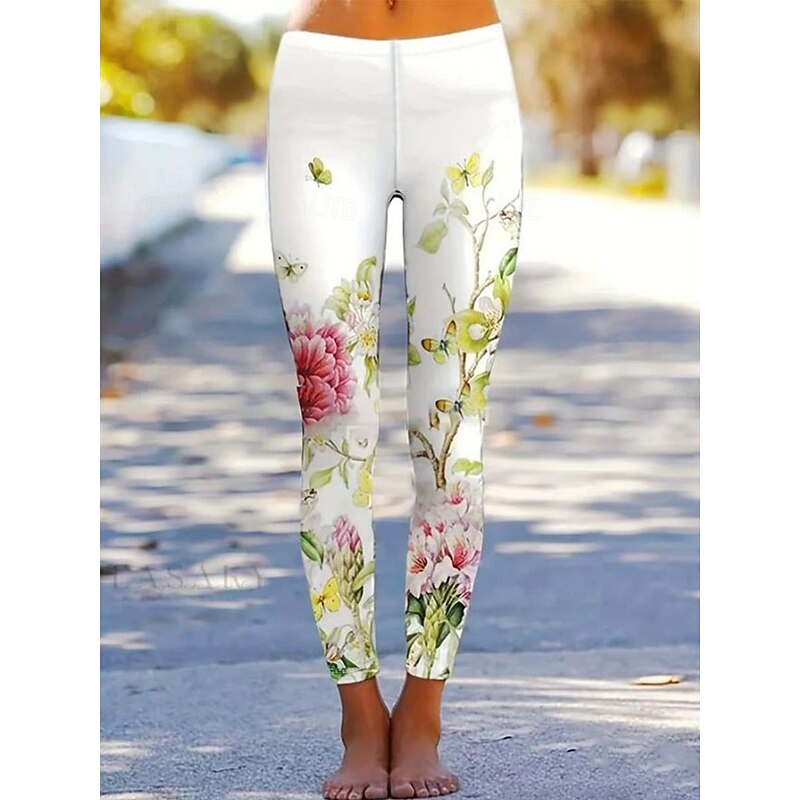 More information about Women's Leggings Vintage Fashion Casual Ankle-Length High Waist Floral Graphic Printing Thermal Warm Soft Breathable Micro-elastic Vacation Casual Daily Black White Pink Blue Summer Spring Regular Fit