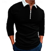 More information about Men's Quarter Zip Polo Golf Shirt Daily Holiday Lapel Long Sleeve Fashion Modern Color Block Spring & Fall Regular Fit Black White Wine Navy Blue Royal Blue Blue Quarter Zip Polo