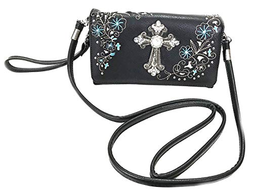 HOT ! Rhinestone Cross Embroidered Floral Western Cross Wallet