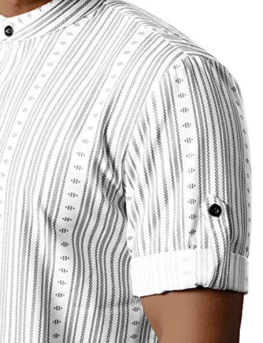 JOGAL Mens Striped Henley Shirt Short Sleeve Traditional African Style Dashiki Shirts