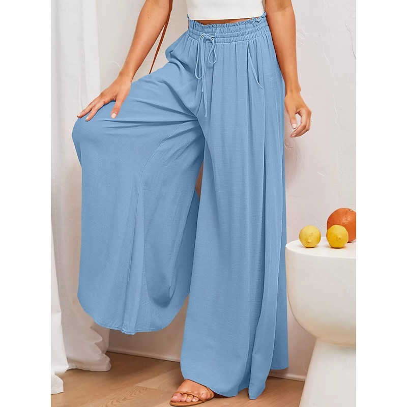 : Crafted from a premium blend of cotton and linen, these women's wide-leg pants offer a lightweight and breathable experience, ensuring comfort during the spring and summer months. The fabric provides a natural, soft touch that enhances wearability.