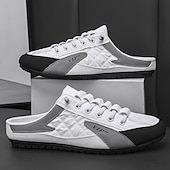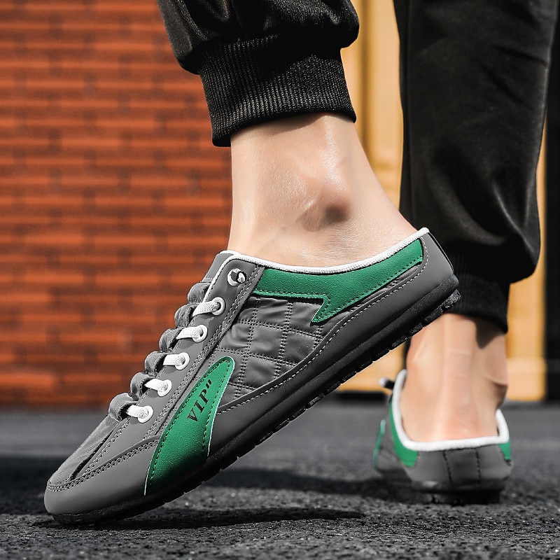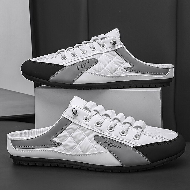 Highlights [Fabric and Material] : Crafted with a high-quality PU upper, these men's casual slip-on sneakers offer a sleek and modern finish, perfect for summer wear. The durable synthetic materials provide a polished look while ensuring longevity and comfort. [Fit and Style] : Featuring an open-heel design combined with a lightweight, lace-up style, these sneakers are designed for a snug yet comfortable fit. The round toe ensures ample space, enhancing the relaxed, casual style. [Design Highlights] : The contrasting colors along with quilted stitching detail give these sneakers a dynamic and sophisticated appearance. The open-heel design offers easy slip-on convenience, while the sturdy rubber outsole provides excellent grip for versatile use. [Occasions] : Ideal for a variety of activities, these sneakers are perfect for walking, athletic pursuits, or everyday casual wear. Whether navigating urban landscapes or enjoying a summer day out, they blend style with practicality effortlessly. [Size Range] : Available in sizes 39 through 44, these sneakers cater to a broad range of foot sizes, ensuring a comfortable fit for many customers.