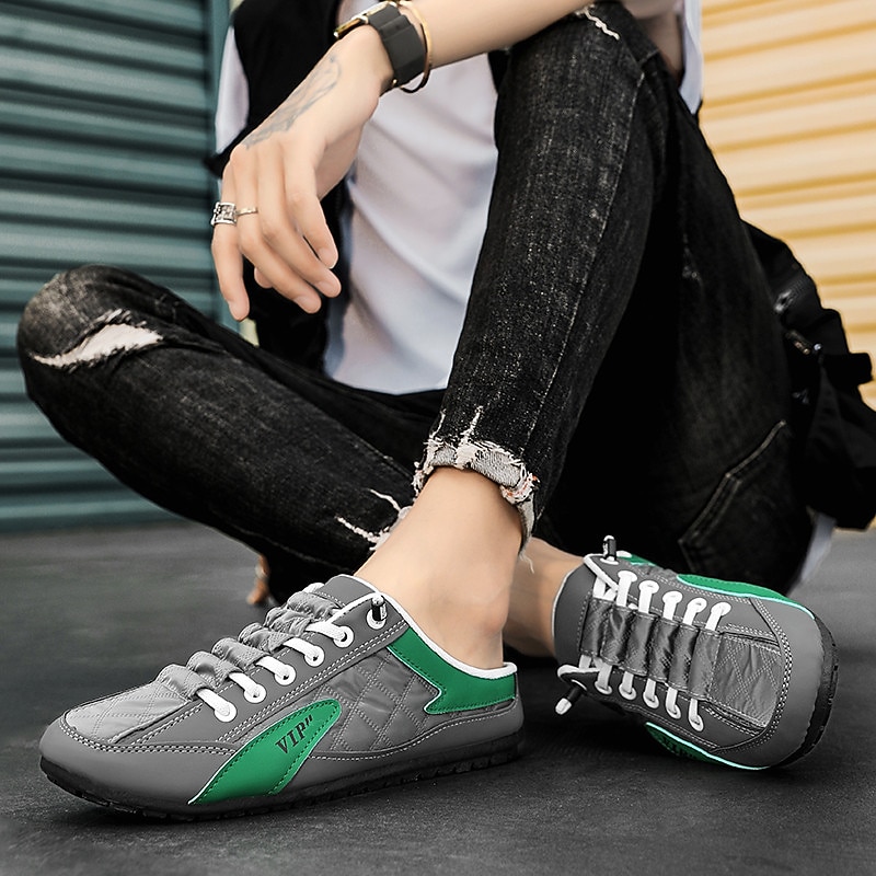 HOT ! Men's Casual Slip-On Sneakers with Open-Heel Design, Lightweight Lace-Up Style – Ideal for Summer and Everyday Comfort