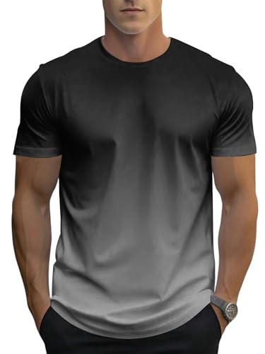 Men's Gradient Color T-Shirt, Short Sleeve Crewneck, Casual Summer Top 5