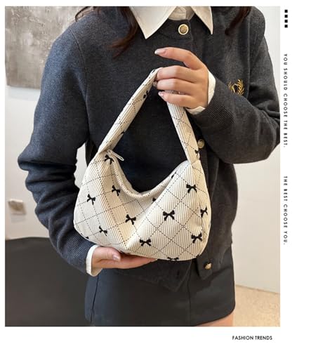 More information about Women's Cute Bow Print Tote Shoulder Bag Small Corduroy Underarm Bag Trendy Handbag Wallet Travel Bag