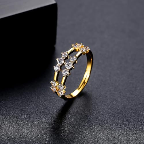 HOT ! 14K Gold Wedding Rings for Women, Double Row of Round Moissanite Promise Rings, Love Gifts for Her